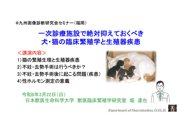 今回のテーマは一次診療施設で絶対抑えておくべき犬・猫の臨床繁殖学と生殖器疾患でした。